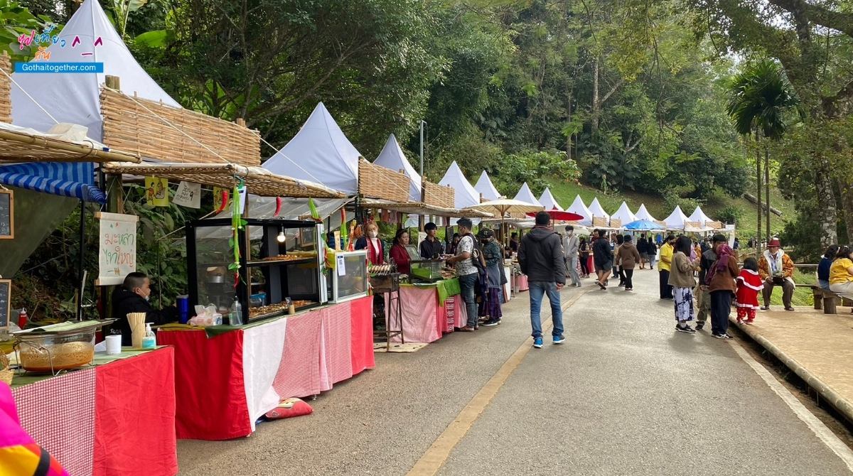 - ส่วนของ อาหารชนเผ่ารสเลิศ ขนมหากินยาก และเครื่องดื่มสูตรพิเศษจากร้านค้าชุมชนและครัวตำหนัก
