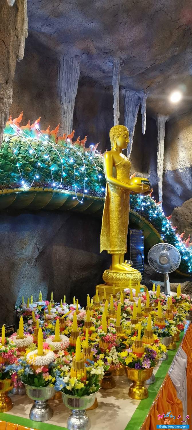 ตอนนี้มีถ้ำพระอรหันต์เถรานาคาธิบดี ภายในสวยมาก มีพระอรหันต์ 8 พระองค์ รวมถึง พระอริยสงฆ์หุ่นเสมือนจริง ค่อยๆเดินชม สวดมนต์ขอพร ถวายผ้าไตรจีวรแด่หลวงพ่อพระพุธมหามุนี ก่อนถวายก็ถือผ้าไตร พร้อมบทสวด เดินวน รอบองค์พระ 3 รอบ แล้วค่อยถวาย