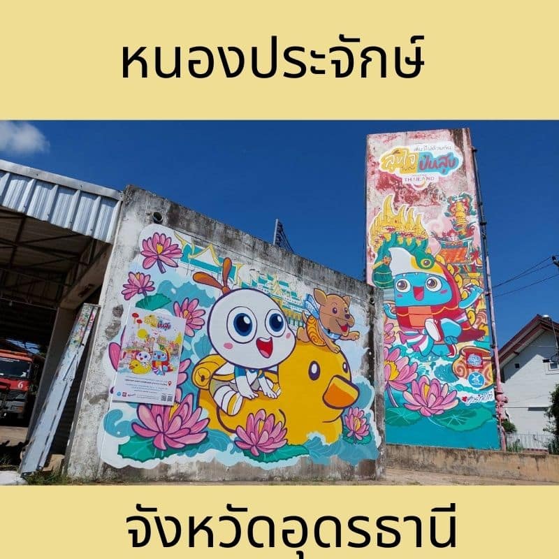เป็นที่พักผ่อนหย่อนใจของผู้คนในจังหวัด ไฮไลท์ที่ใครเห็น สะดุดตาคือเจ้าตุ๊กตาเป็ดสีเหลืองขนาดใหญ่ที่ตั้งอยู่ริมหนองน ้า จุดเด่นของสตรีทอาร์ทแห่งนี้ ประกอบด้วย ภาพน้องสุขใจและน้องปันสุขที่ได้ล่องเรือชมทะเลบัวแดงของหนองหานกุมภวาปี เพื่อถ่ายรูปสวยๆ คู่กับ “คุณทองโบราณ” มาสคอตประจำจังหวัดอุดรธานี โดยมีประวัติที่น่าสนใจ คือเป็นการค้นพบโครงกระดูกสุนัข โบราณ อายุกว่า 3,000 ปี จากแหล่งโบราณคดีบ้านเชียง ที่ได้รับพระราชทานชื่อจากพระบาทสมเด็จพระ บรมชนกาธิเบศร มหาภูมิพลอดุลยเดชมหาราช บรมนาถบพิตร ต่อด้วยการเดินทางไปยังพระพุทธไสยาสน์ โลกนาถศาสดามหามุนีที่เป็นจุดเด่นของวัดป่าภูก้อน ต่อด้วยเที่ยวชมมูลนิธิศาลเจ้าปู่-ย่าที่เหมือนราวกับยก เมืองจีนมาไว้ใจกลางอุดร แบบเนียนกริ๊บเลยก็ว่าได้ ปิดท้ายด้วยการแวะช้อปปิ้งของฝากอย่างไหบ้านเชียง ที่มีลวดลายอันเป็นเอกลักษณ์ต้นต ารับบ้านเชียง ที่มีอายุกว่า 5,600 ปี