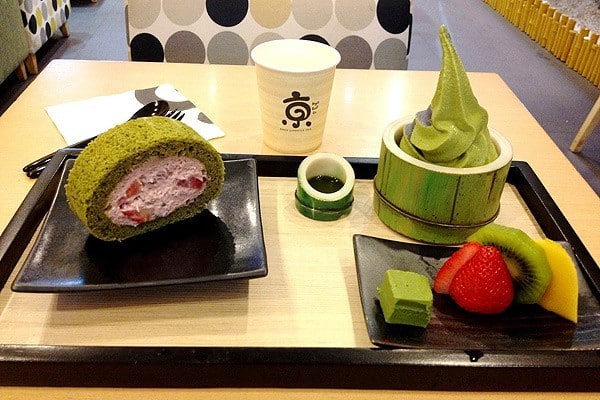ส่วนใครที่อยากกินอะไรหลายๆ อย่าง ต้องลอง “Kyo Roll Set” โรลเค้กชาเขียวมัทชะแท้ สอดไส้ด้วยครีมถั่วแดงและสตรอเบอร์รี่สด เค้กเบานุ่มกินแล้วช่างหอมหวานละมุนลิ้น และยังมีไอศกรีมซอฟท์เสิร์ฟสูตรพิเศษ 2 สี ทำจากชาเขียวและถ่านไม้ไผ่ญี่ปุ่น กินแล้วหอมหวานเย็นชื่นฉ่ำปาก พร้อมผลไม้สด