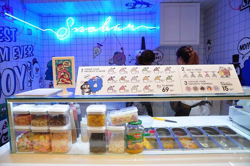 “Snowbar” มีไอศกรีมให้เลือกมากถึง 16 รสชาติ อาทิ โยเกิร์ต, ชาไทย, ช็อกโกแลต, มะม่วง, บลูกเบอร์รี่ และท๊อปปิ้งให้เลือกใส่มากมาย ที่สำคัญ Low fat ด้วยจ้า ทั้งอร่อย และไม่อ้วนแบบนี้สาวๆ เลิฟเรยจ้า