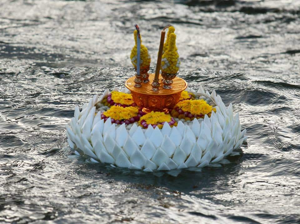 และท่านผู้หญิงฉัตรแก้ว นันทาภิวัฒน์ นางสนองพระโอษฐ์ในสมเด็จพระนางเจ้า ฯ พระบรมราชินีนาถ เชิญพระประทีปของสมเด็จพระนางเจ้า ฯ พระบรมราชินีนาถ ไปลอยกลางแม่น้ำเจ้าพระยา ด้านหน้าท่าน้ำโรงพยาบาลศิริราช เนื่องในวันลอยกระทง 25 พฤศจิกายน 2558