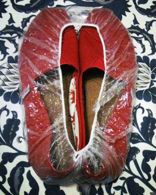 2. หมวกอาบน้ำแห้งแล้ว กลับด้าน เอามาห่อรองเท้ากันเปื้อนได้นะจ๊ะ