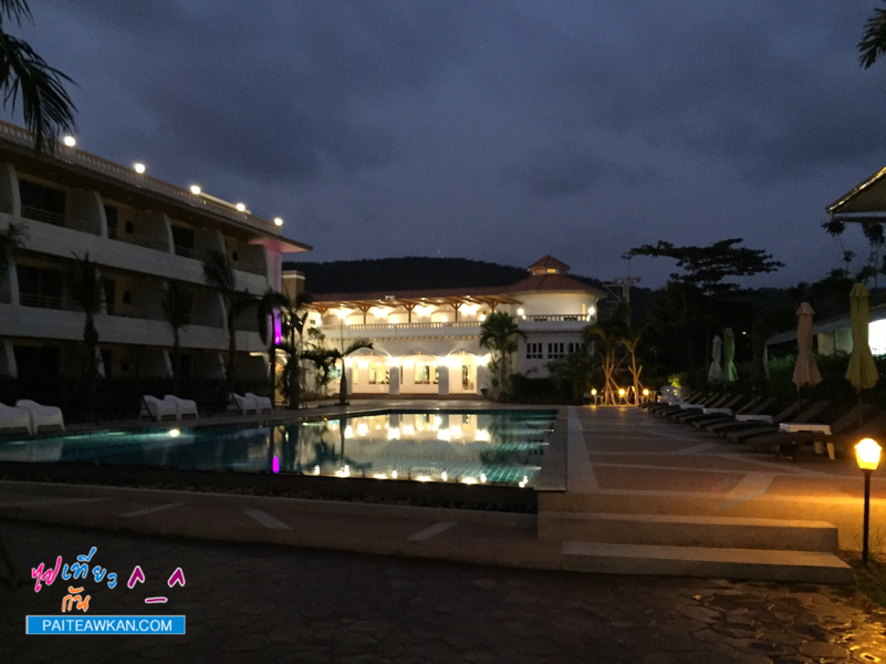 มาถึงโรงแรมแล้ว เราขอเดินเล่นรอบๆ กันก่อน บรรยากาศภายในโรงแรมร่มรื่นไปด้วยต้นไม้น้อยใหญ่ เดินไปเรื่อยๆ ก็มาถึงชายหาดซึ่งขาว สะอาด เงียบสงบ และเป็นส่วนตัว สามารถลงเล่นได้น้ำได้อย่างสบายๆ เลยแหละ